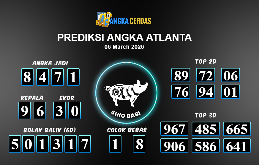 Prediksi Togel ATLANTA untuk hari ini Jumat, 06 Maret 2026, adalah salah