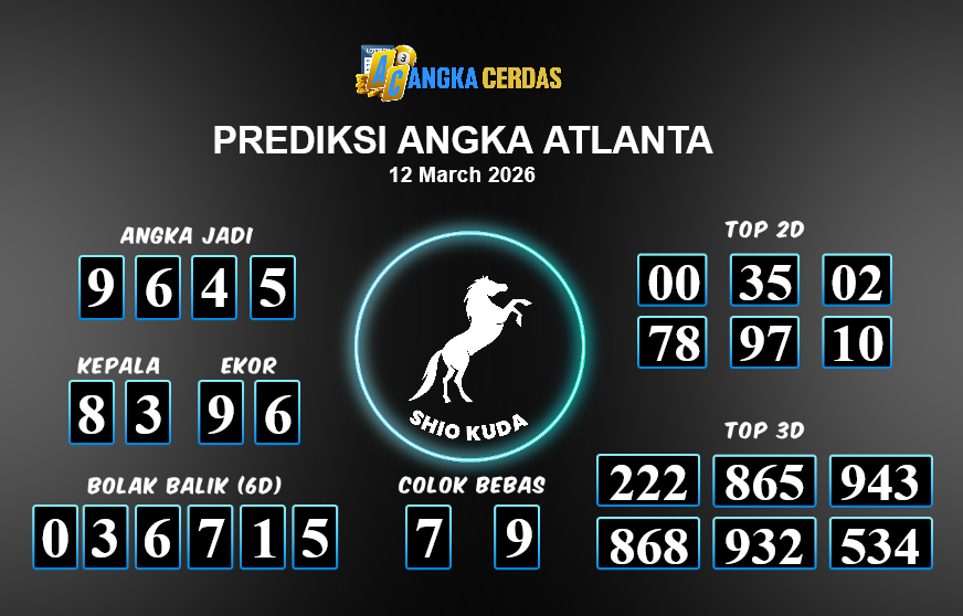 Prediksi Togel ATLANTA untuk hari ini Kamis, 12 Maret 2026, adalah salah