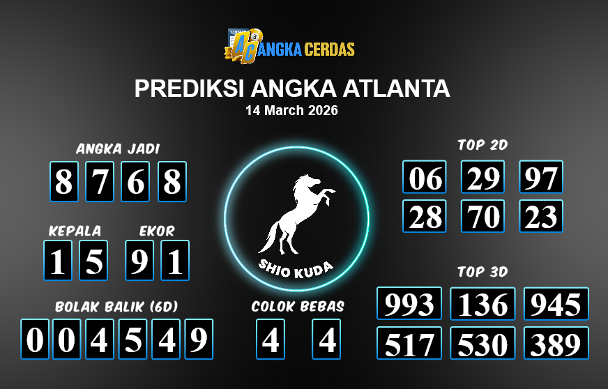Prediksi Togel ATLANTA untuk hari ini Sabtu, 14 Maret 2026, adalah salah