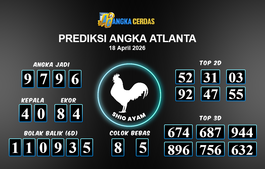 Prediksi Togel ATLANTA untuk hari ini Sabtu, 18 April 2026, adalah salahsatu jenis togel yang memiliki banyak penggemar.Ini terutama ditujukanbagi Anda yang menyukai 4d/3d/2d. Prediksi Angka Cerdas yang kamisediakan,bisa