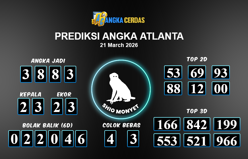 Prediksi Togel ATLANTA untuk hari ini Sabtu, 21 Maret 2026, adalah salah