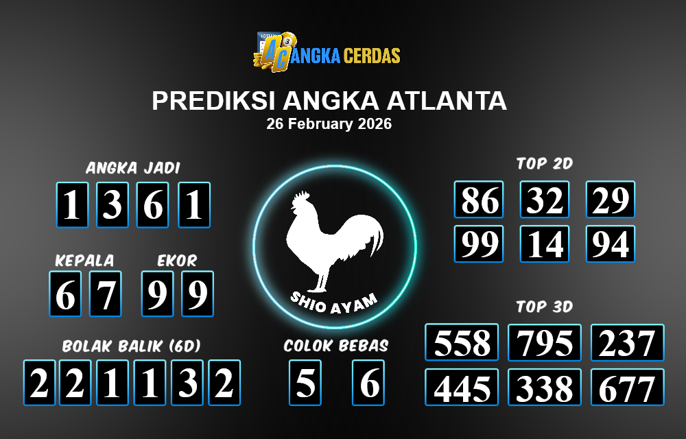 Prediksi Togel ATLANTA untuk hari ini Kamis, 26 Februari 2026, adalah salah