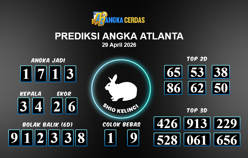 Prediksi Togel ATLANTA untuk hari ini Rabu, 29 April 2026, adalah salahsatu jenis togel yang memiliki banyak penggemar.Ini terutama ditujukanbagi Anda yang menyukai 4d/3d/2d. Prediksi Angka Cerdas yang kamisediakan,bisa