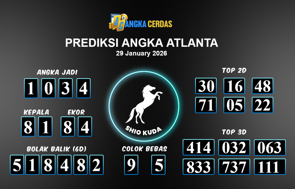 Prediksi Togel ATLANTA untuk hari ini Kamis 29 Januari 2026,adalah salah