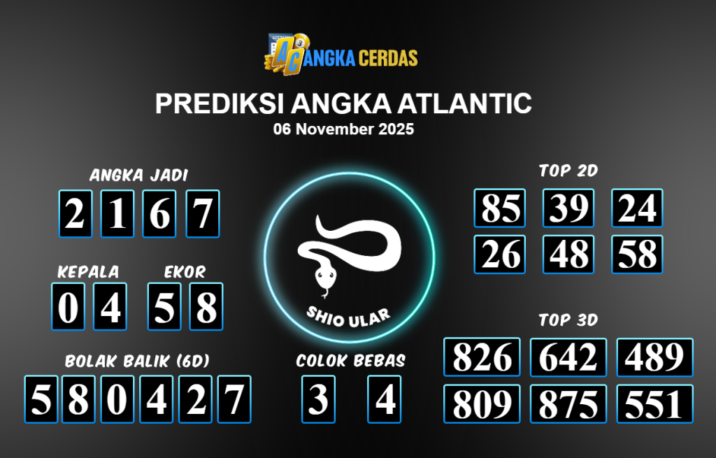 Prediksi Togel ATLANTIC untuk hari ini Kamis 06 November 2025, adalah salah