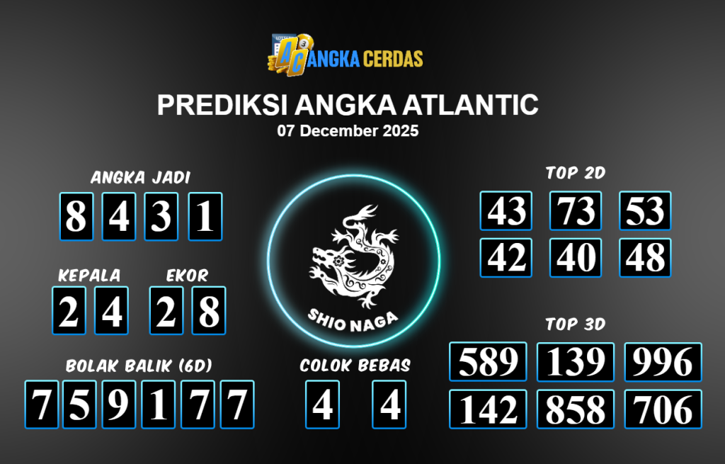 Prediksi Togel ATLANTIC untuk hari ini Minggu 07 Desember November 2025, adalah salah