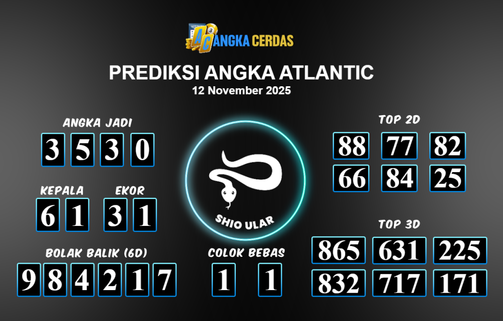 Prediksi Togel ATLANTIC untuk hari ini Rabu 12 November 2025, adalah salah
