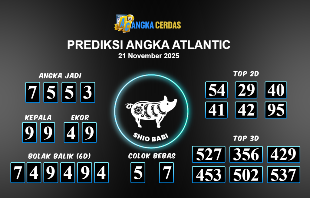 Prediksi Togel ATLANTIC untuk hari ini Jumat 21 November 2025, adalah salah
