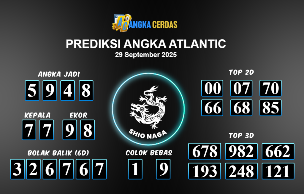 Prediksi Togel ATLANTIC untuk hari ini Senin 29 September 2025, adalah salah