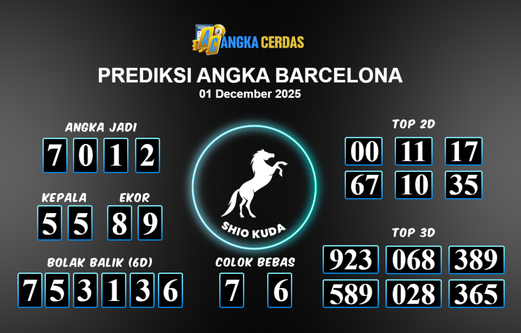 Prediksi Togel BARCELONA untuk hari ini Senin 1 Desember November 2025, adalah salah