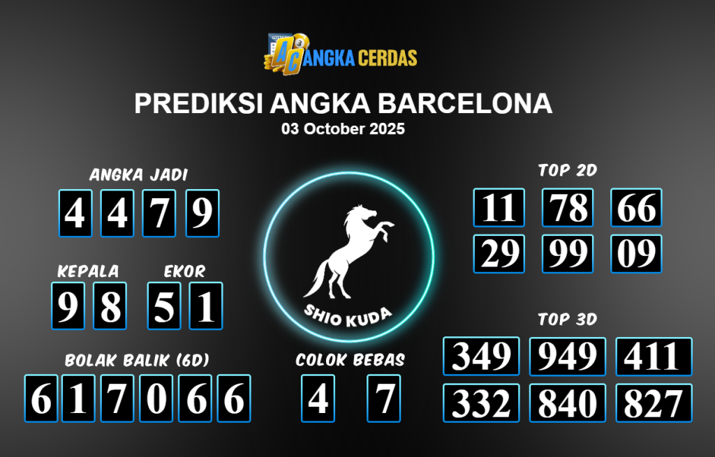 Prediksi Togel BARCELONA untuk hari ini Kamis 02 Oktober 2025, adalah salah