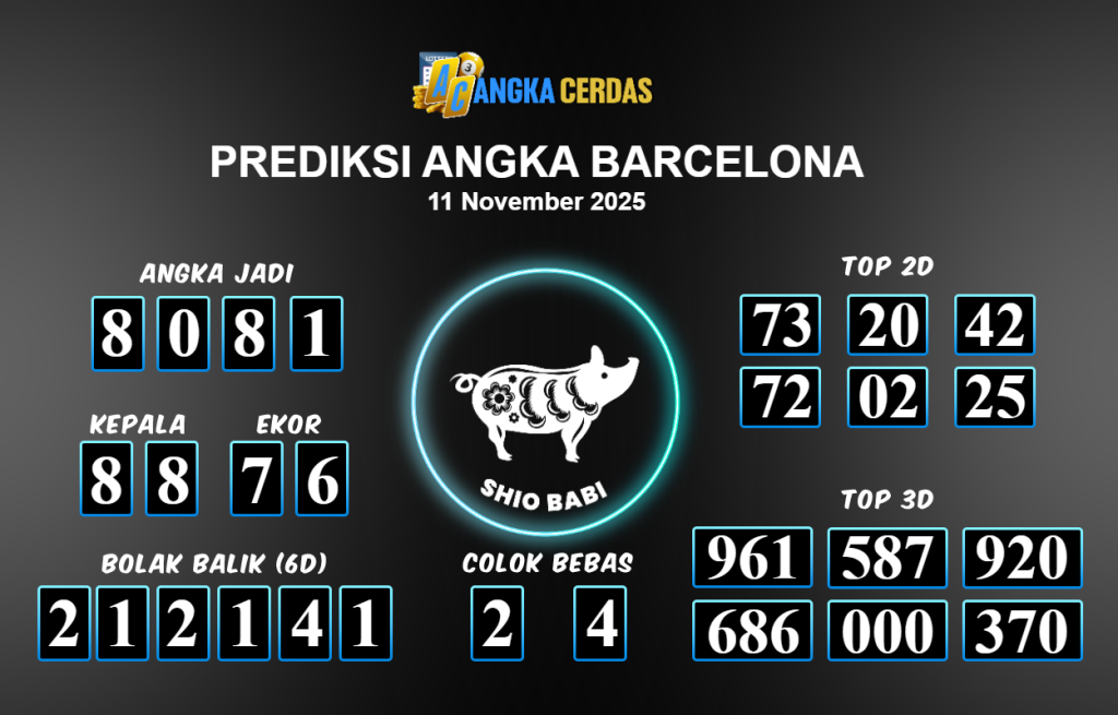Prediksi Togel BARCELONA untuk hari ini Selasa 11 November 2025, adalah salah