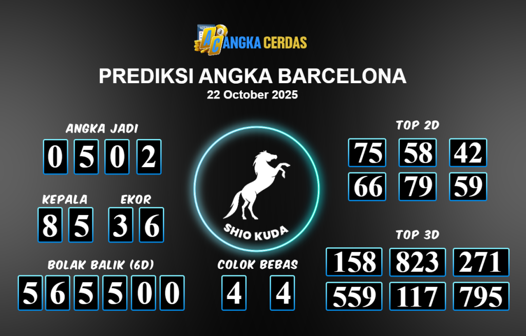 Prediksi Togel BARCELONA untuk hari ini Rabu 22 Oktober 2025, adalah salah