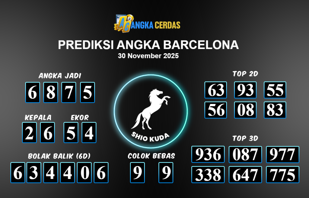 Prediksi Togel BARCELONA untuk hari ini Minggu 30 November 2025, adalah salah