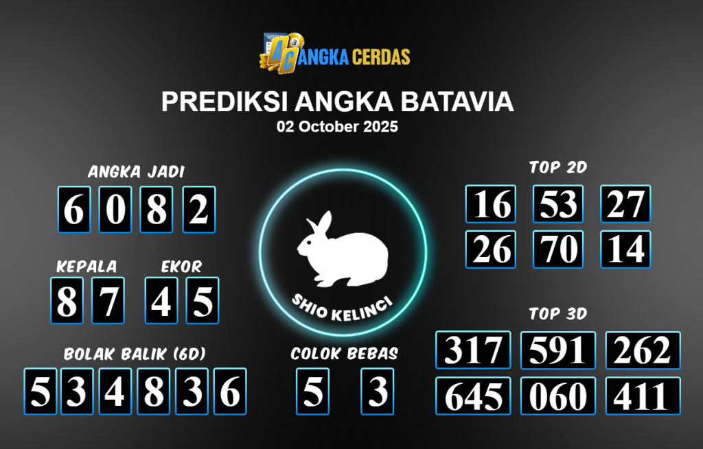 Prediksi Togel BATAVIA untuk hari ini Kamis 02 Oktober 2025, adalah salah