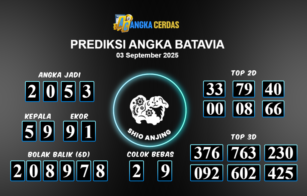 Prediksi Togel BATAVIA untuk hari ini Rabu 03 September 2025, adalah salah