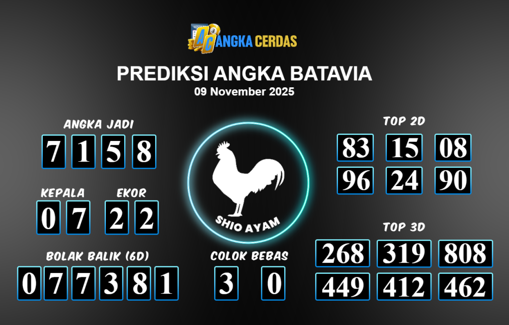 Prediksi Togel BATAVIA untuk hari ini Minggu 09 November 2025, adalah salah