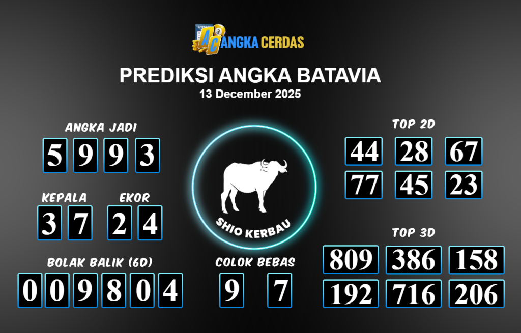 Prediksi Togel BATAVIA untuk hari ini Sabtu 13 Desember November 2025, adalah salah