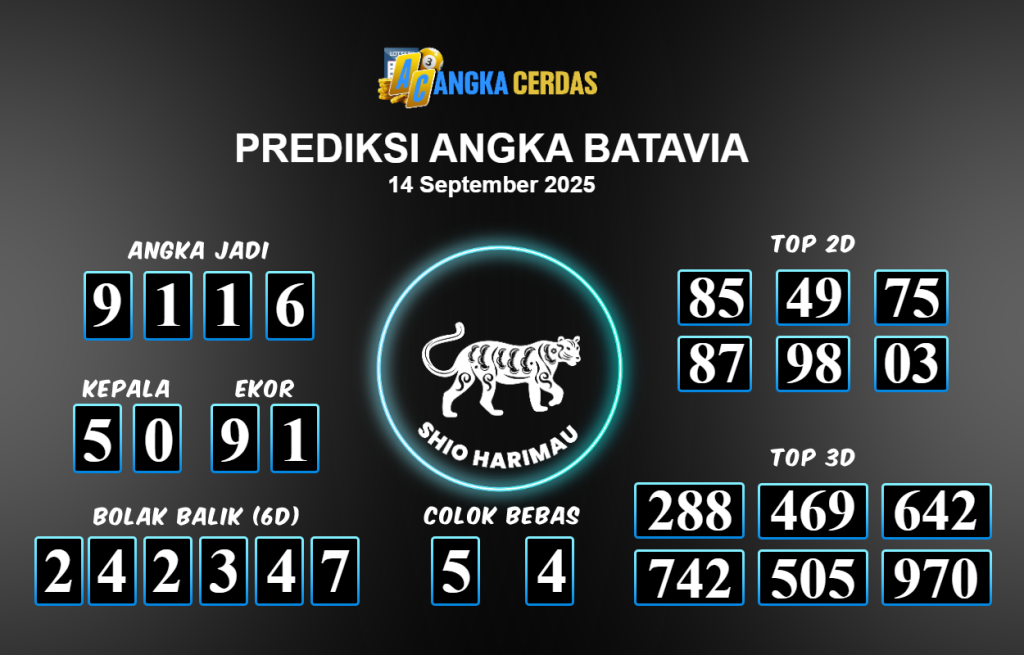 Prediksi Togel BATAVIA untuk hari ini Minggu 14 September 2025, adalah salah