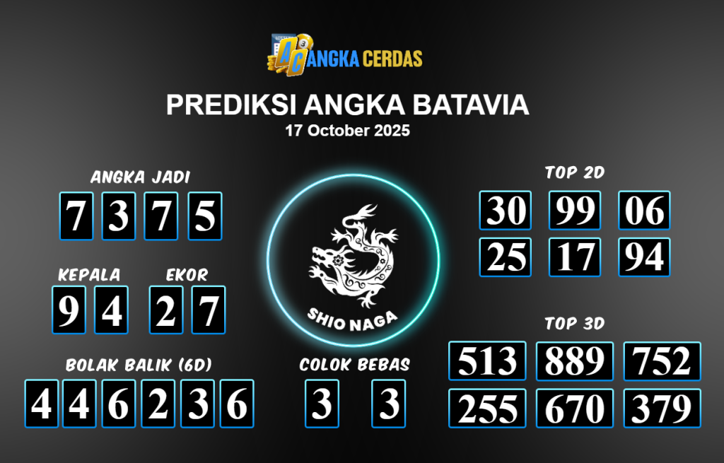 Prediksi Togel BATAVIA untuk hari ini Jum’at 17 Oktober 2025, adalah salah