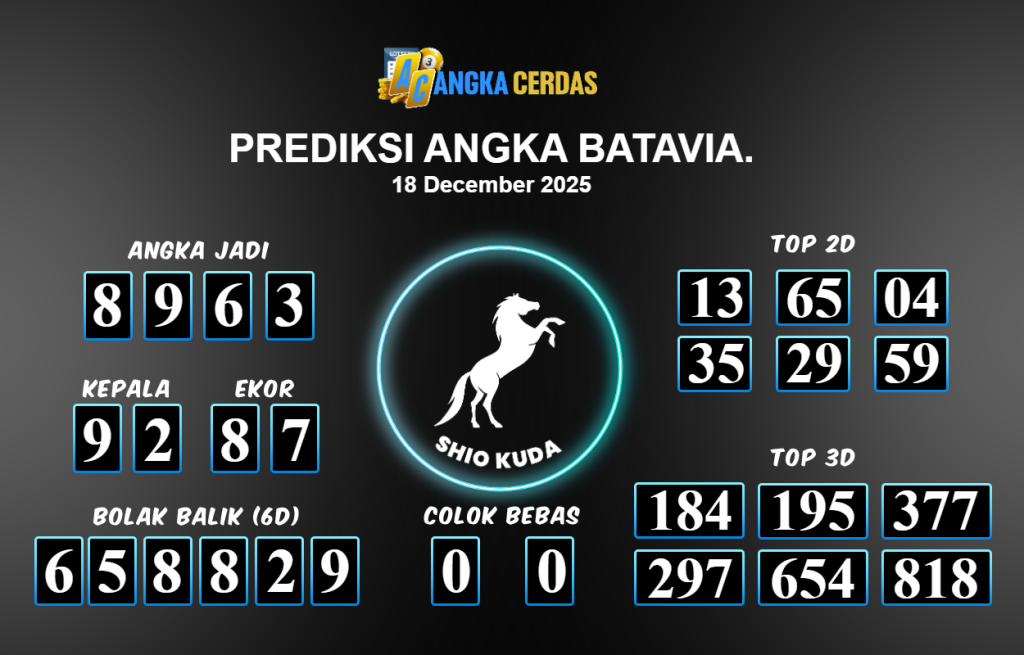 Prediksi Togel BATAVIA untuk hari ini Kamis 18 Desember November 2025, adalah salah