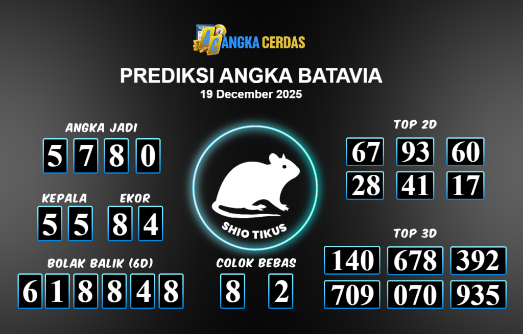 Prediksi Togel BATAVIA untuk hari ini Jumat 19 Desember November 2025, adalah salah