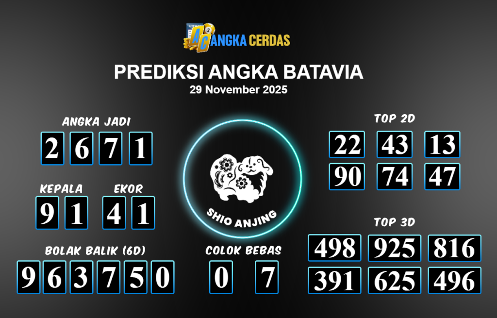 Prediksi Togel BATAVIA untuk hari ini Sabtu 29 November 2025, adalah salah