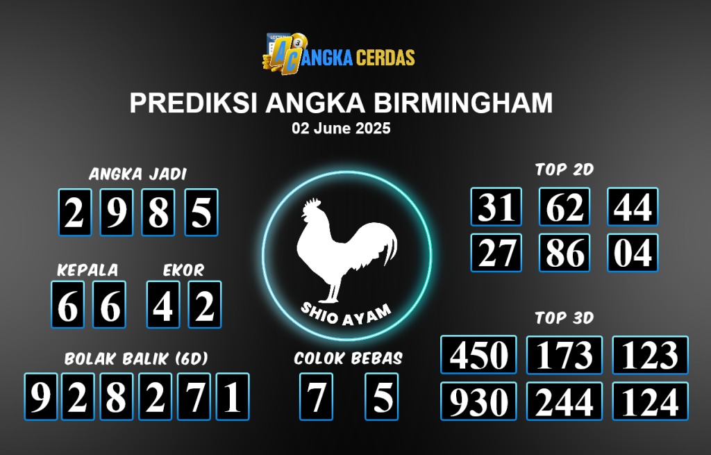 Prediksi Togel BIRMINGHAM untuk hari ini Senin, 2 Juni 2025, adalah salah