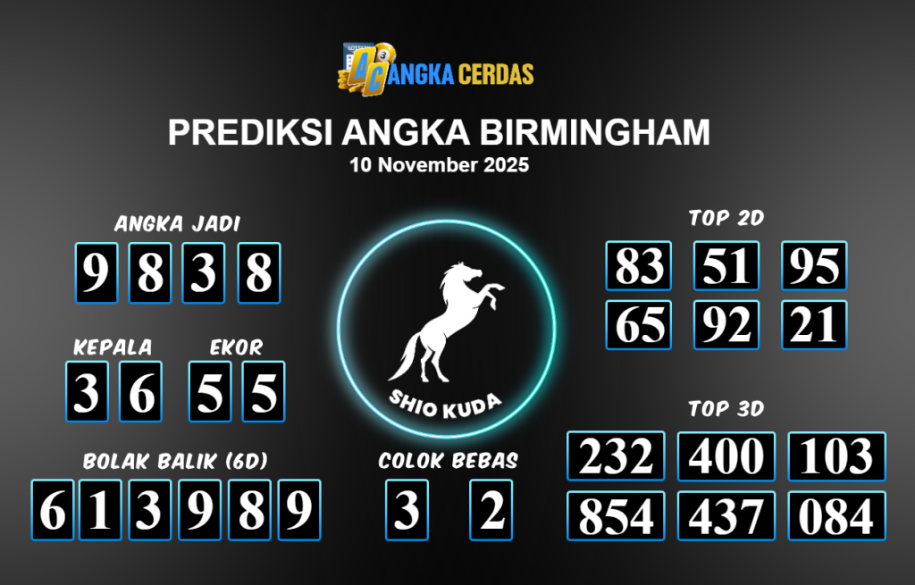 Prediksi Togel BIRMINGHAM untuk hari ini Senin 10 November 2025, adalah salah
