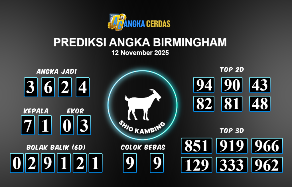 Prediksi Togel BIRMINGHAM untuk hari ini Rabu 12 November 2025, adalah salah