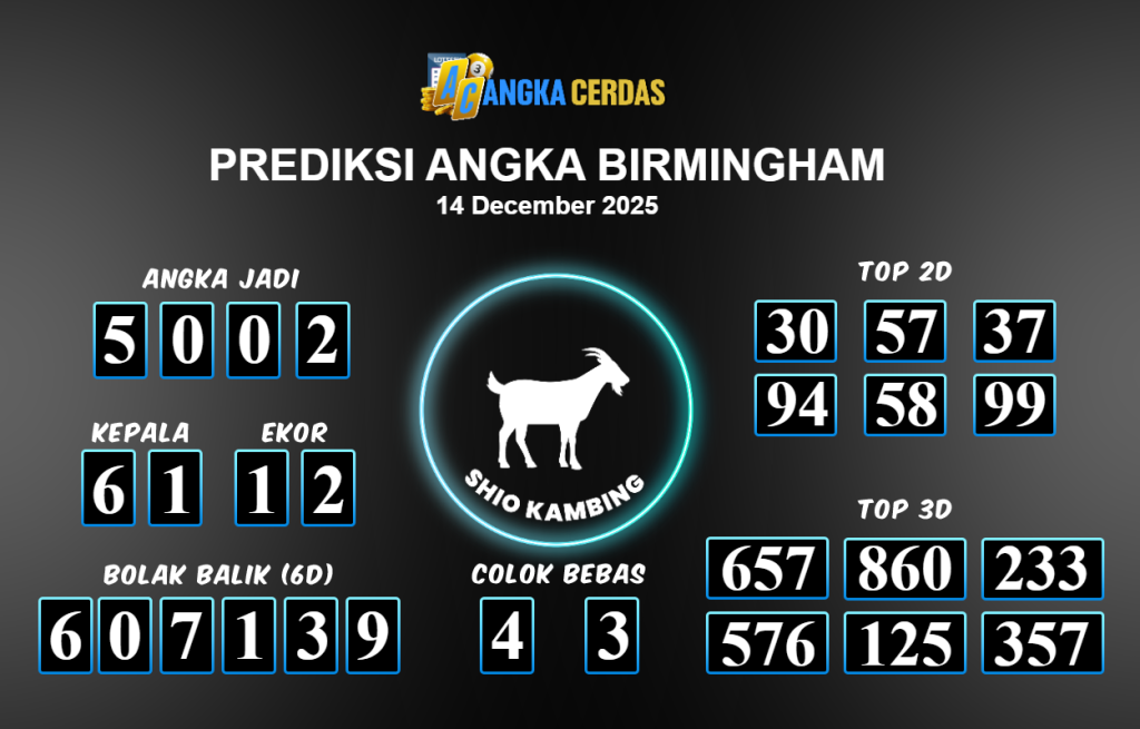 Prediksi Togel BIRMINGHAM untuk hari ini Minggu 14 Desember November 2025, adalah salah