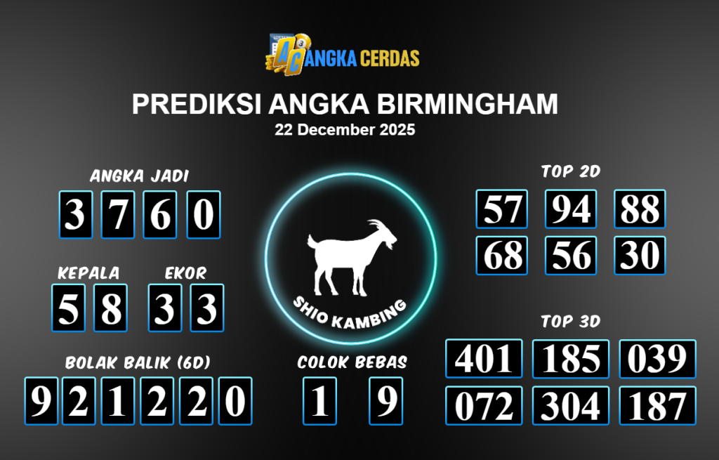 Prediksi Togel BIRMINGHAM untuk hari ini Senin 22 Desember November 2025, adalah salah