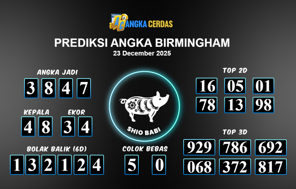 Prediksi Togel BIRMINGHAM untuk hari ini Selasa 23 Desember November 2025, adalah salah