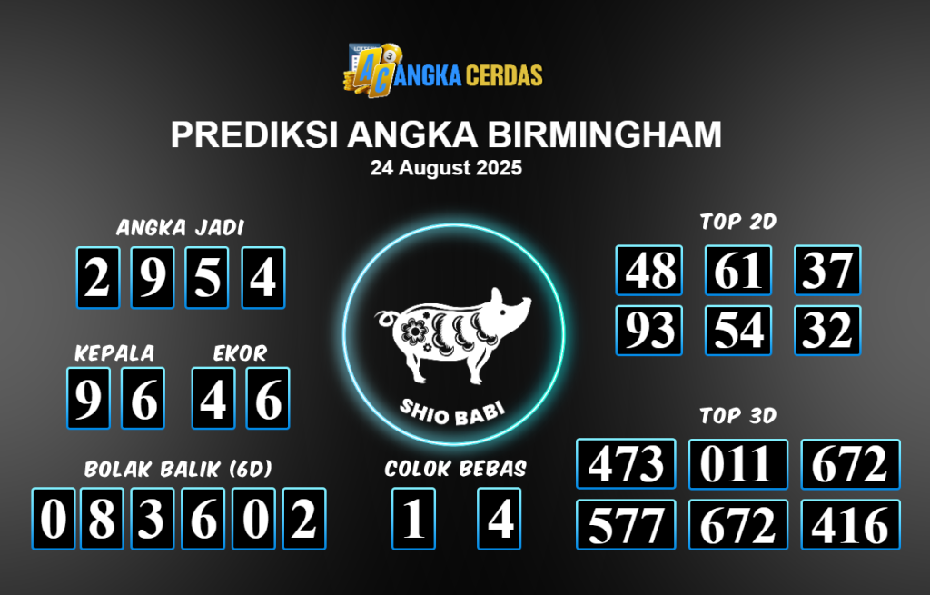 Prediksi Togel BIRMINGHAM untuk hari ini Minggu 24 Agustus 2025, adalah salah