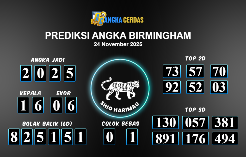 Prediksi Togel BIRMINGHAM untuk hari ini Senin 24 November 2025, adalah salah