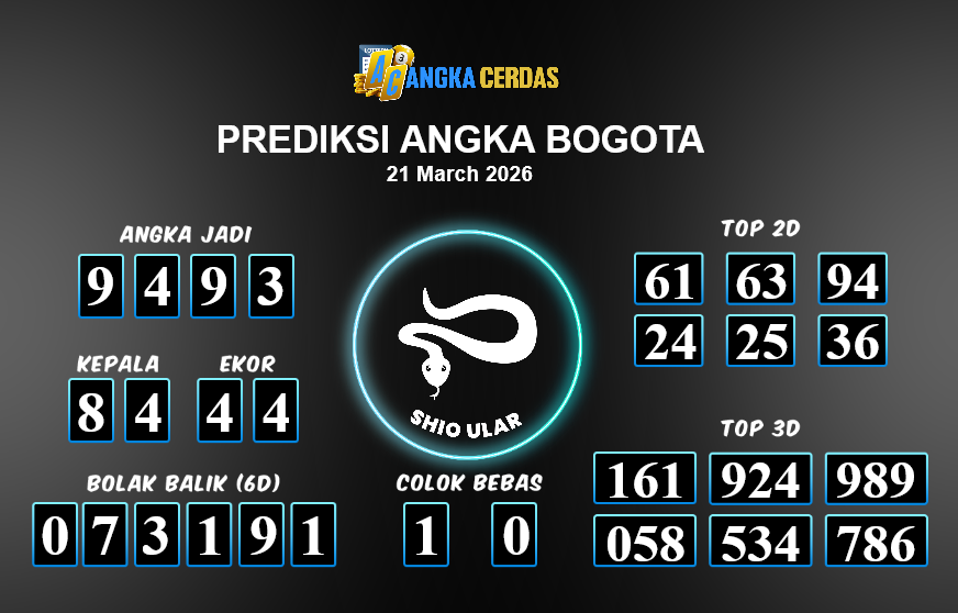 Prediksi Togel BOGOTA untuk hari ini Sabtu, 21 Maret 2026, adalah salah