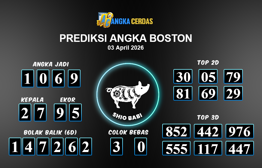 Prediksi Togel BOSTON untuk hari ini Jumat, 03 April 2026, adalah salah