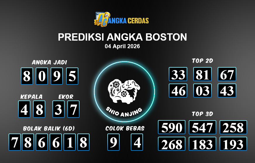 Prediksi Togel BOSTON untuk hari ini Sabtu, 04 April 2026, adalah salah