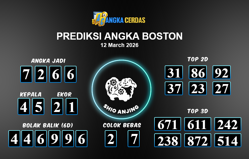 Prediksi Togel BOSTON untuk hari ini Kamis, 12 Maret 2026, adalah salah