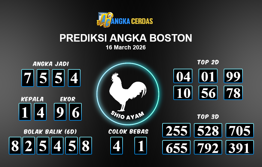 Prediksi Togel BOSTON untuk hari ini Minggu, 15 Maret 2026, adalah salah
