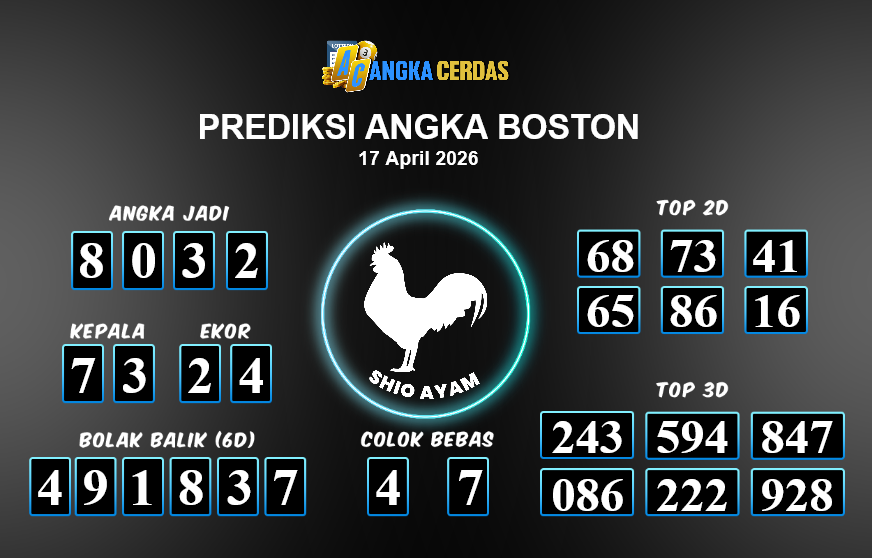 Prediksi Togel BOSTON untuk hari ini Jumat, 17 April 2026, adalah salah