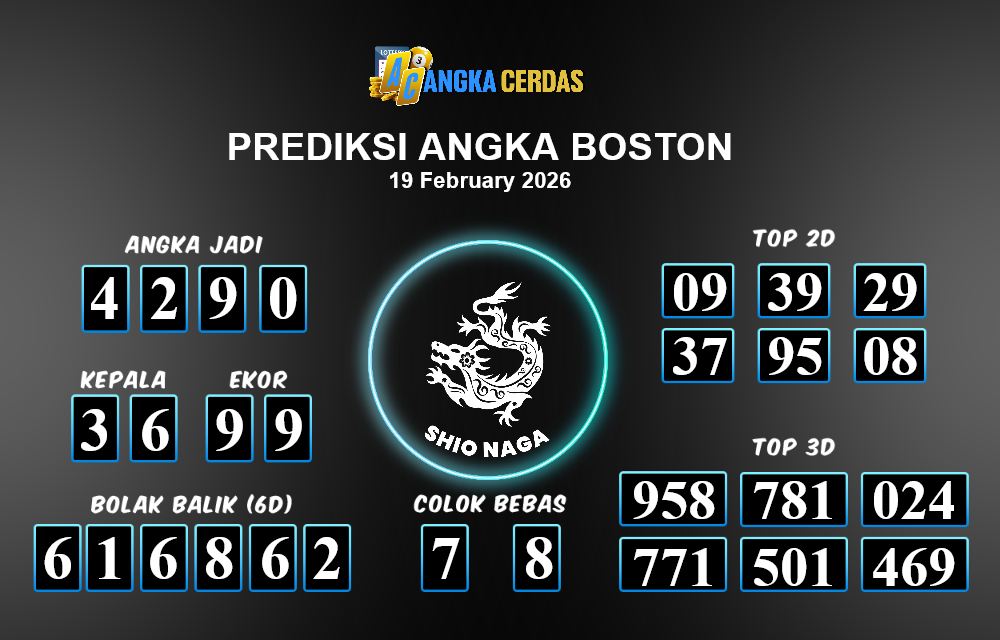 Prediksi Togel BOSTON untuk hari ini Kamis, 19 Februari 2026, adalah salah