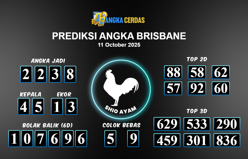 Prediksi Togel BRISBANE untuk hari ini Sabtu 11 Oktober 2025, adalah salah