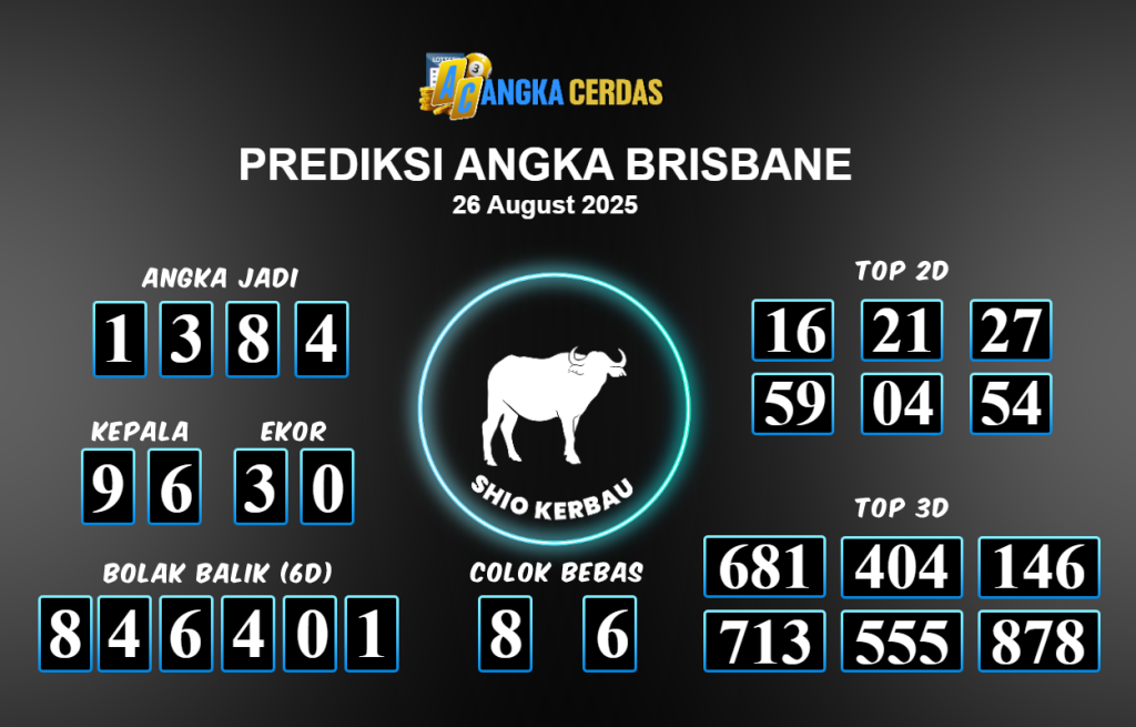 Prediksi Togel BRISBANE untuk hari ini Selasa 26 Agustus 2025, adalah salah