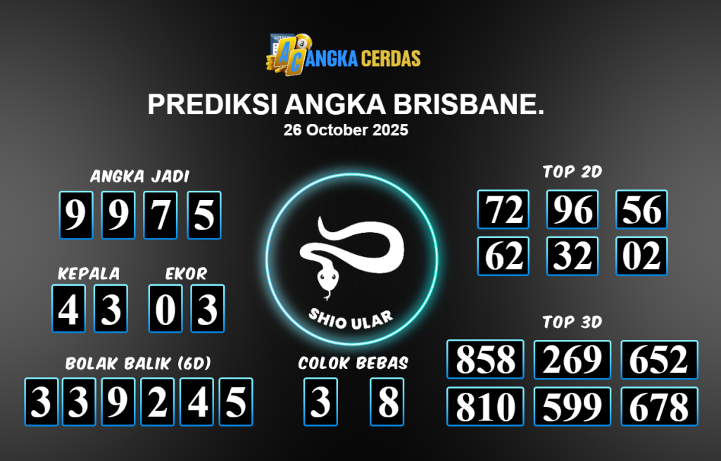 Prediksi Togel BRISBANE untuk hari ini Minggu 26 Oktober 2025, adalah salah