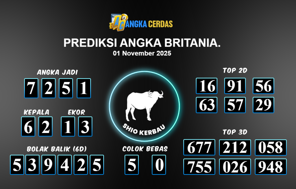 Angka Cerdas : Bocoran Prediksi Togel BRITANIA Tanggal 01 November 2025