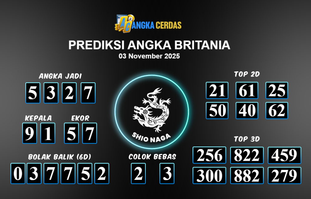 Prediksi Togel BRITANIA untuk hari ini Senin 03 November 2025, adalah salah