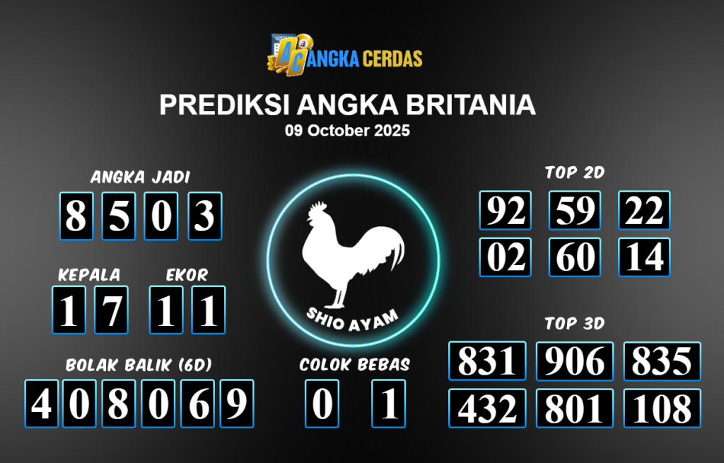 Prediksi Togel BRITANIA untuk hari ini Kamis 09 Oktober 2025, adalah salah