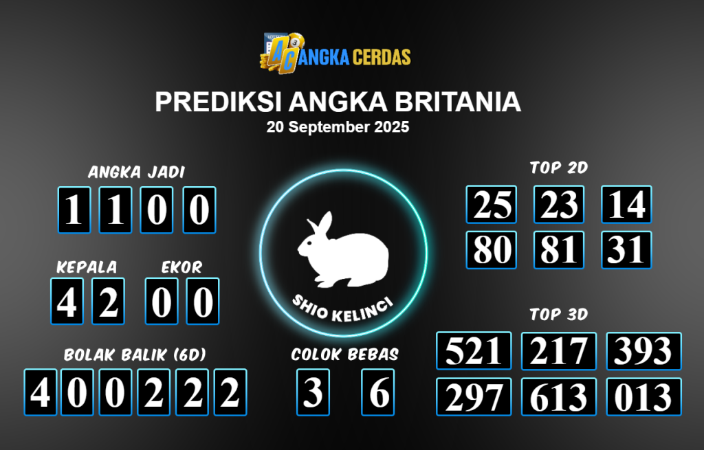 Angka Cerdas : Bocoran Prediksi Togel BRITANIA Tanggal 20 September 2025