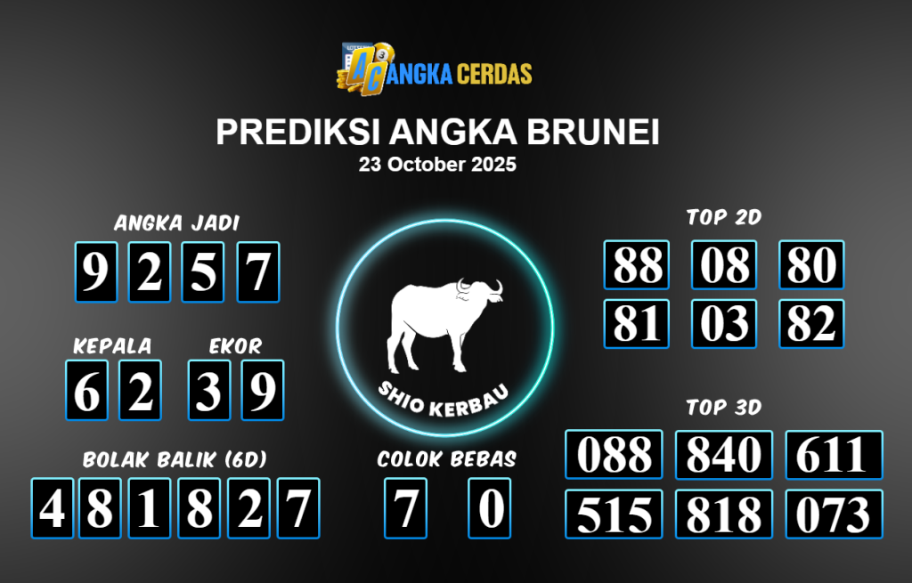 Prediksi Togel BRUNEI untuk hari ini Kamis 23 Oktober 2025, adalah salah